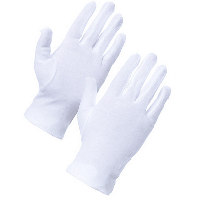 Пара белых перчаток из чистого хлопка, незаменимы при работе с архивными материалами, чтобы исключить отпечатки на работе. Средний размер