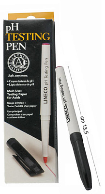 Простым движением тестового маркера «Lineco», вы можете определить, является ли бумага и картон, который Вы планируете использовать или используете пригодным для консервационного оформления. Этот удобный метод позволяет найти отличие между безопасными (нейтральный или щелочной) и кислотными материалами.